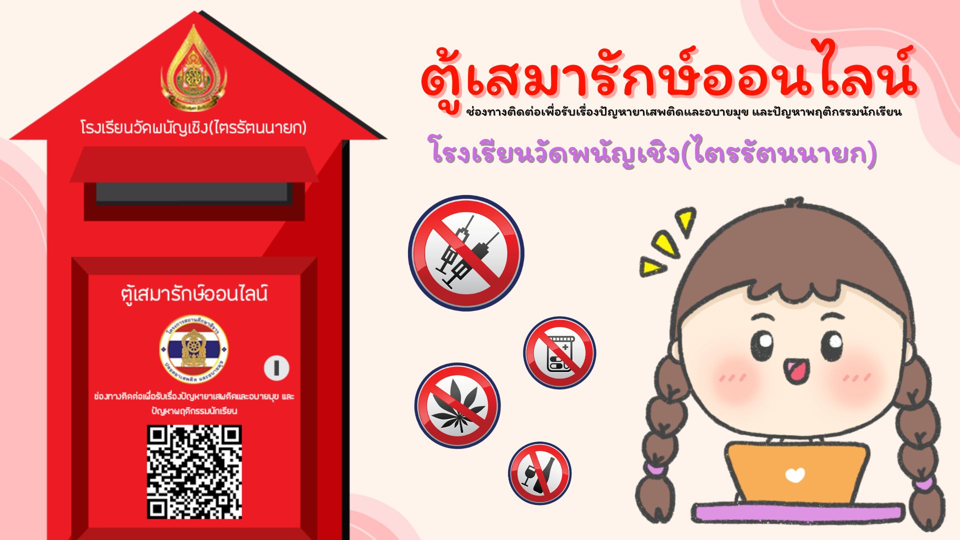 เเจ้งเรื่องร้องเรียน เกี่ยวกับปัญหายาเสพติดและอบายมุข และปัญหาพฤติกรรมนักเรียน
